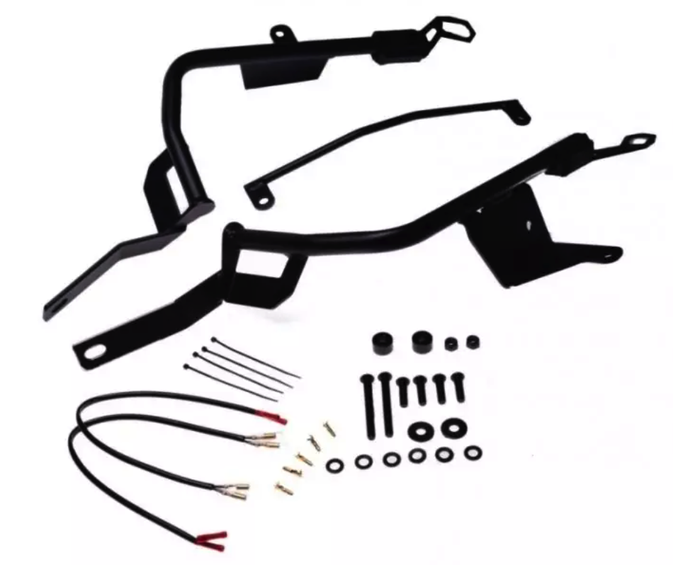 Este kit está composto por duas paletas SH36 Simil Carbono "uma esquerda e uma direita" junto com um jogo de Cerraduras e o suporte específico da moto.