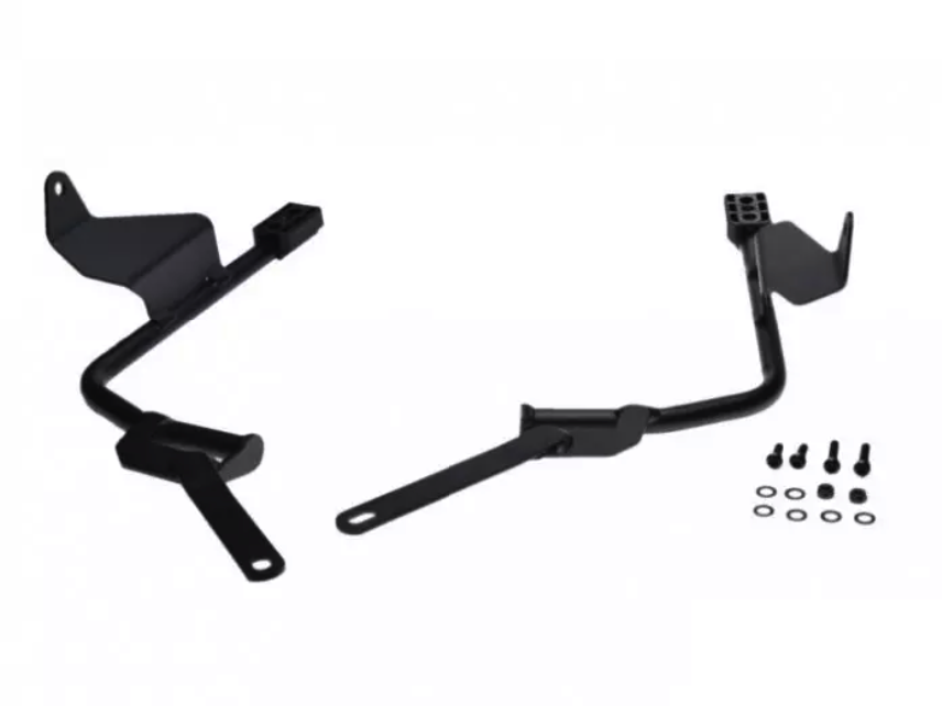 Este kit está composto por duas paletas SH36 Simil Carbono "uma esquerda e uma direita" junto com um jogo de Cerraduras e o suporte específico da moto.