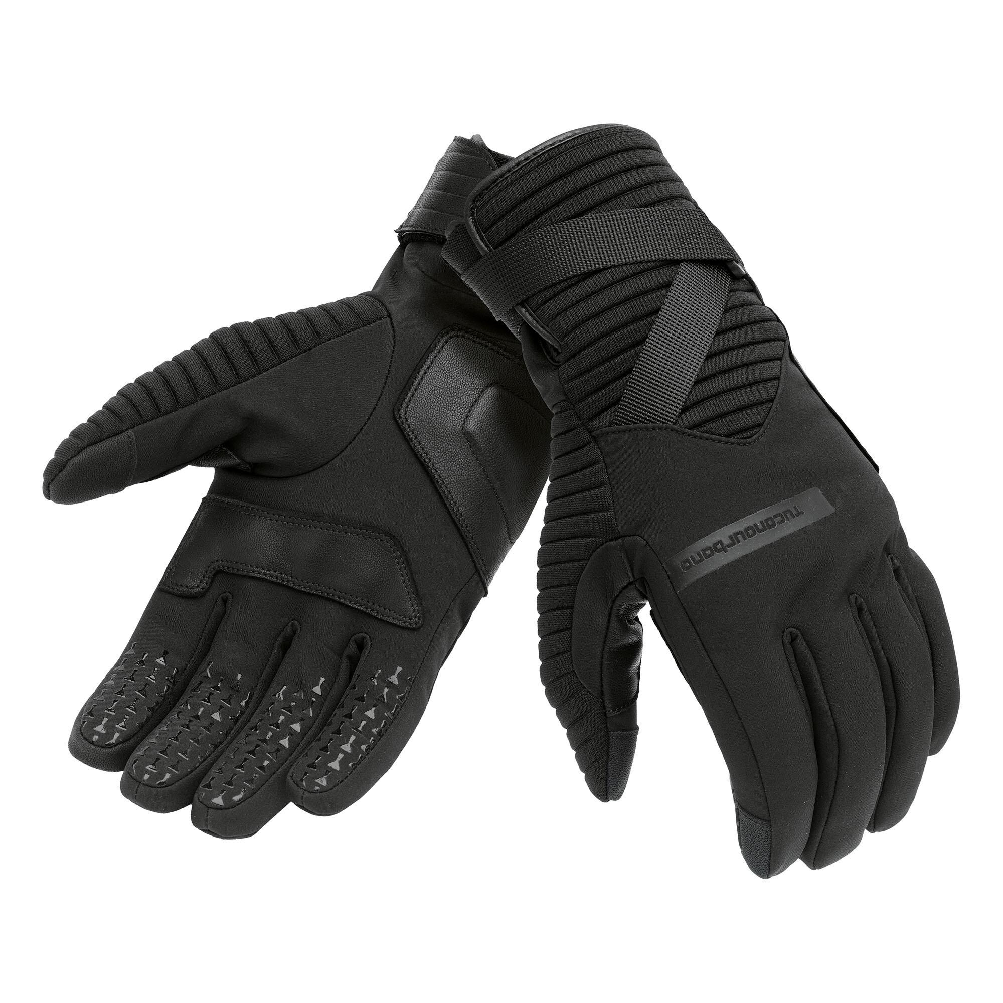 Luvas de inverno para motocicleta à prova d'água feitas em pele e poliéster com proteções nos nós dos dedos Tucano Break Hydroscud na cor Preto. Ref 9144HMN