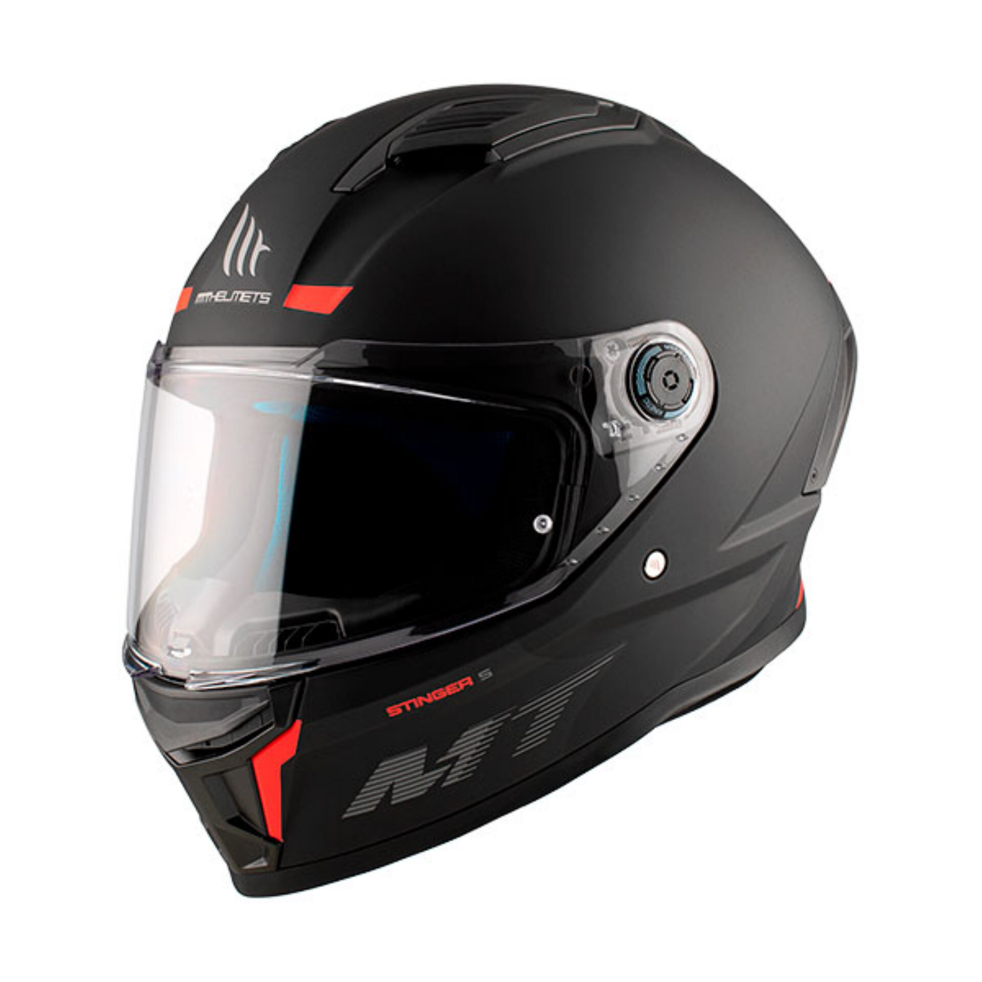 O capacete integral MT STINGER 2 é um capacete preto e vermelho com fecho rápido e fabricado em resina termoplástica. É um capacete unissex com acabamento fosco e atende aos regulamentos ECE 22-06. Perfeito para homens que procuram segurança e estilo. Refª 13340000113