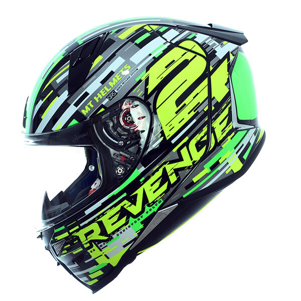 Totalmente atualizado, este capacete de motocicleta MT Revenge 2 Baye incorpora vários recursos interessantes, como a nova tela MT-V-14 de 2,2 mm de espessura com uma abertura central. Depois que a tela é fechada, a trava garante uma vedação ideal contra vento e água. Ao pressionar o botão de bloqueio, a tela será liberada para sua primeira posição; n abrindo automaticamente. Também destacamos seu sistema de ventilação eficiente com entradas de ar dianteiras (uma abaixo da tela, duas na parte superior do capacete e duas pequenas grades sob o queixo) e um grande spoiler de ar de exaustão na parte traseira. Além disso, possui dutos para ótima circulação de ar dentro do capacete.