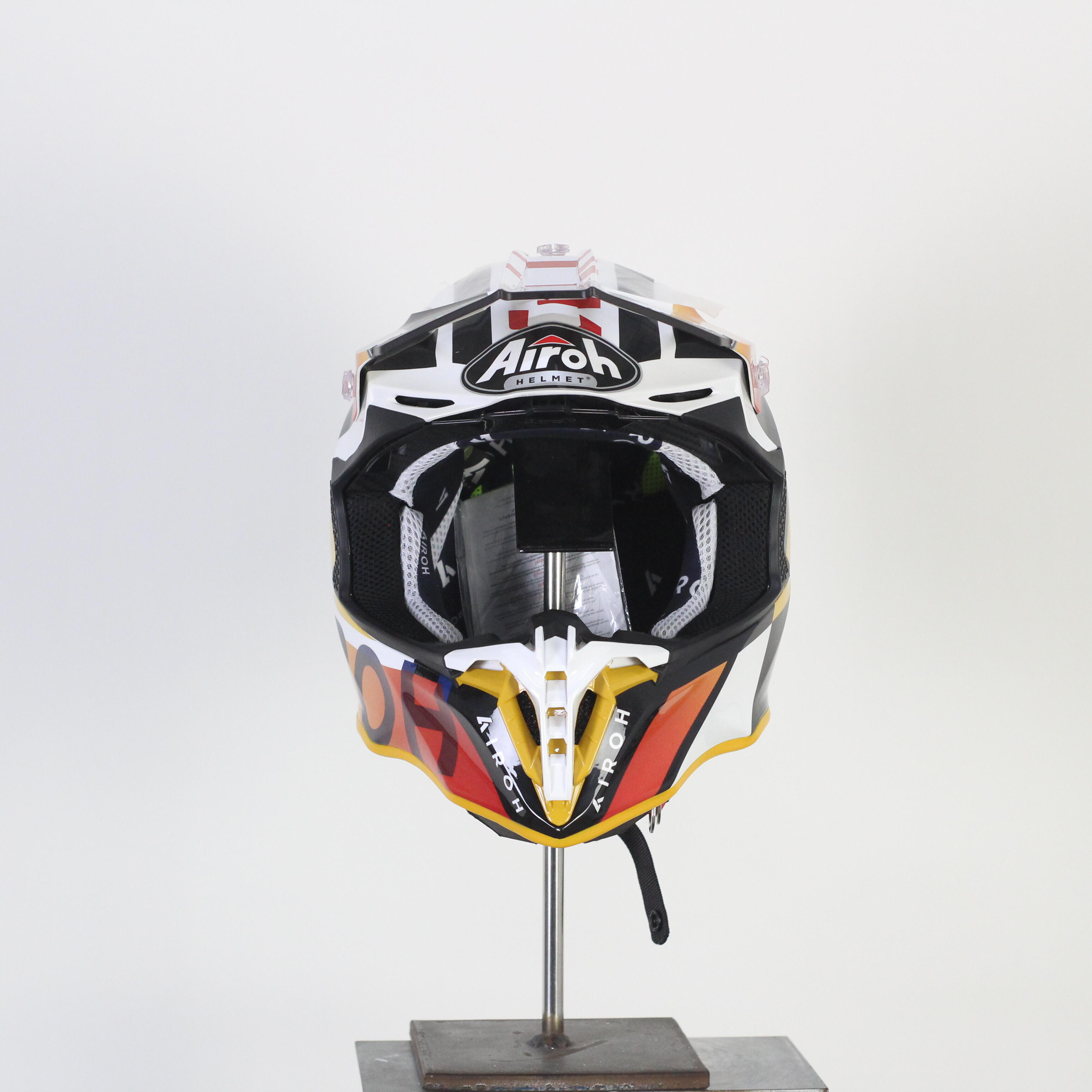Capacete de motocross nunca usado. Contém a caixa original, sem uso, com pequenos arranhões no plástico na parte superior traseira, que está quebrada e afeta levemente a estética do capacete. Capacete de motocross agressivo da Airoh, o Twist 2.0 Shaken, com o sistema "Airoh Sliding Net" que facilita o deslizamento do forro interno em caso de queda. Sistema inovador de EPS de dupla densidade para garantir um melhor ajuste. Sistema de fechamento duplo D.