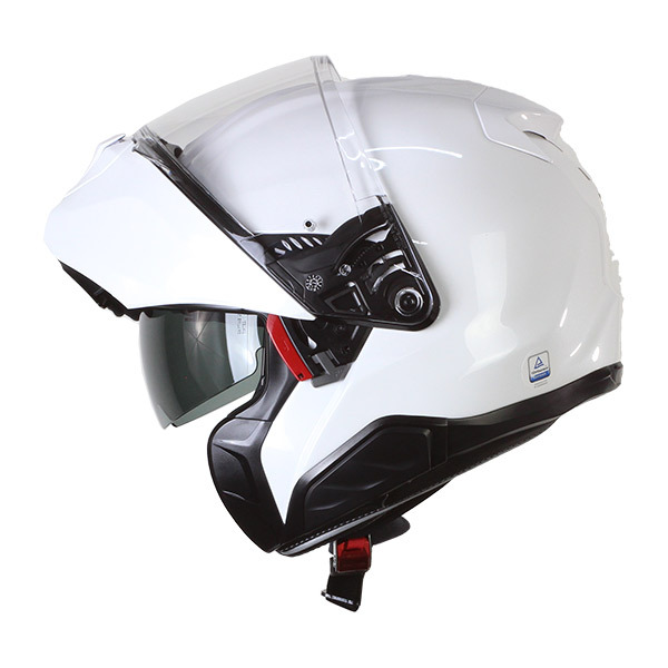 Capacete modular de excelente qualidade HJC RPHA91 em branco pérola, possui viseira solar integrada e tela pronta para pinlock. Ref: 147329
