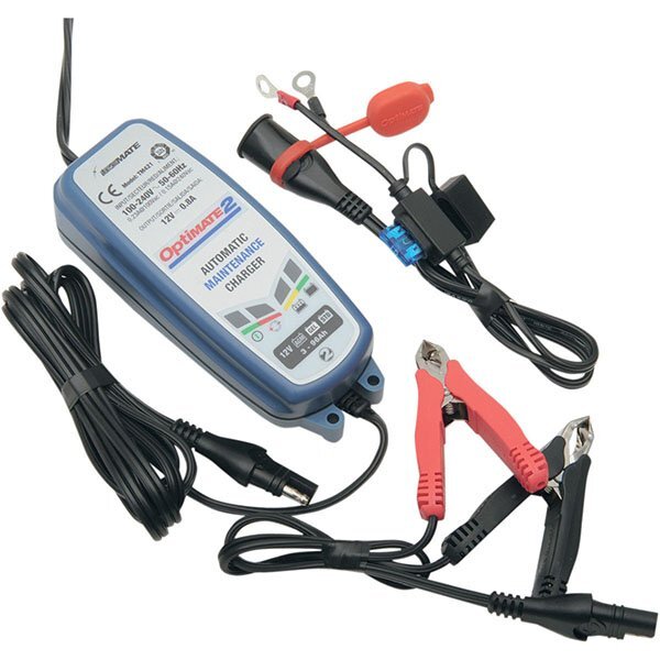 Carregador OptiMate 2 é impermeável e muito fácil de usar: basta ligar para a bateria e ligá-lo à tomada eléctrica mais próxima, o resto é totalmente automático. Com a sua corrente constante de 0,8 A, OptiMate 2 carrega automaticamente a bateria em plena capacidade e, em seguida, ativa o modo de carga de manutenção poupança de bateria OptiMate para manter a bateria carregada e pronta de 100%. Ao mesmo tempo,fornece energia para o computador de bordo, a tela eo alarme.