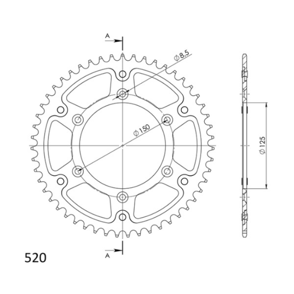 Pinhão de arrasto de substituição em SuperSprox preto para modificar sua KTM SX 2T 150 de 2009 a 2011 para 50 dentes.