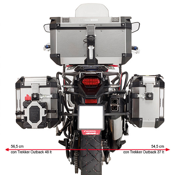 Porta-malas Givi para malas Trekker Outback Monokey CamSide, diâmetro 18 mm, para dotar nossa motocicleta com um sistema confortável e seguro para poder montar e desmontar nossas malas com facilidade e rapidez.