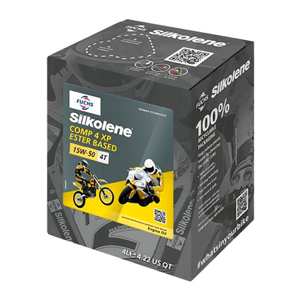 Silkolene Comp 4 15W-50 XP Óleo de motocicleta No formato de 4 litros em um novo recipiente 100% reciclável tipo cubo