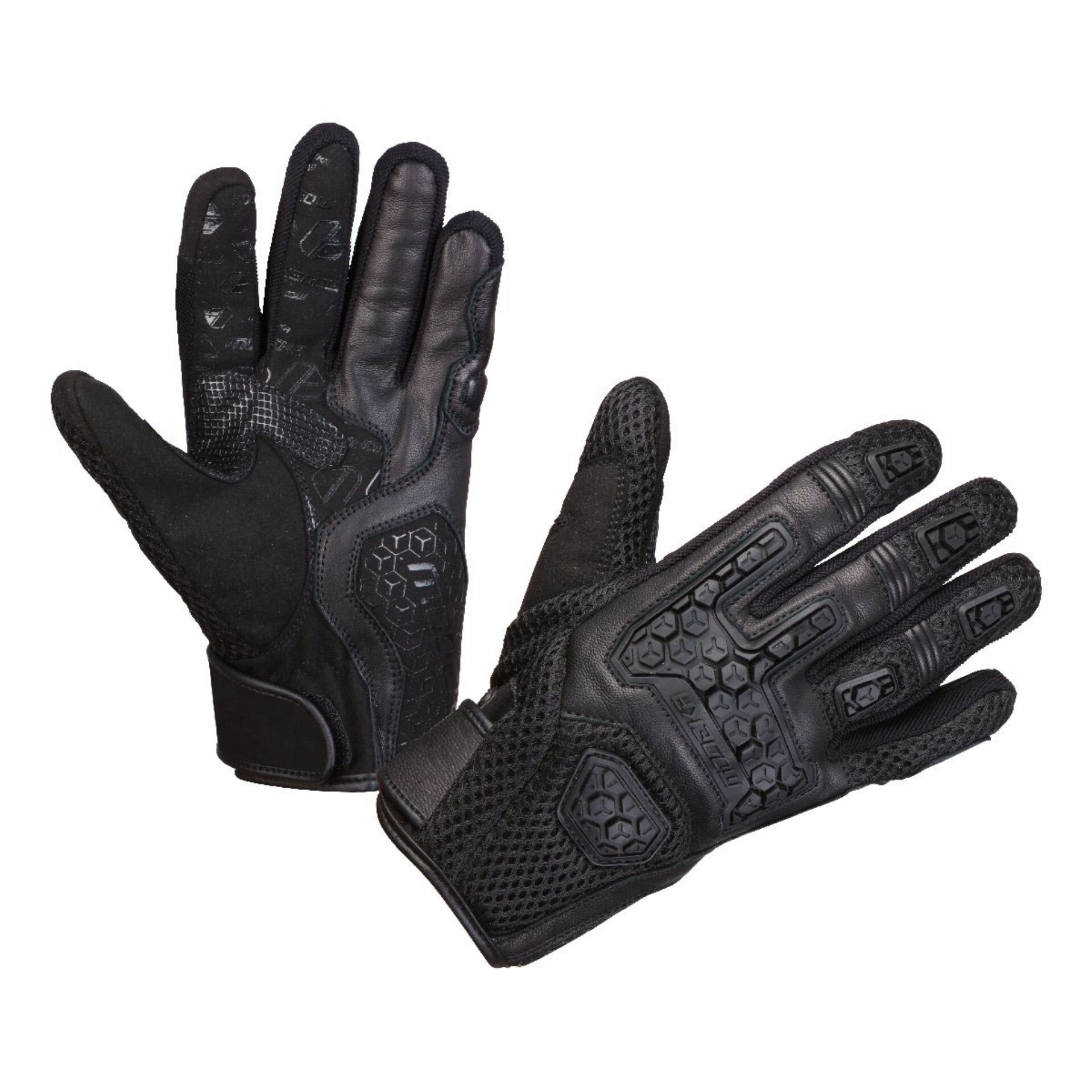 As luvas de verão Modeka Dracon Air na cor preta são unissex e oferecem proteção de nível 1, são respiráveis e confeccionadas em material têxtil.