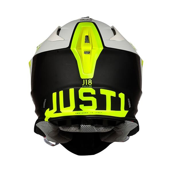 Nova tendência em capacetes de motocross, enduro e off-road que a marca italiana Just1 apresenta. O capacete multidisciplinar Just1 J18 Pulsar enduro para motociclistas oferece um sistema J.1.ER de liberação rápida, através do qual as almofadas podem ser removidas sem a necessidade de retirar o capacete, funcionalidade essencial em caso de acidente. Possui nove entradas de ar e seis saídas que garantem o M&Aaguda; ventilação máxima. Atende aos regulamentos DOT / ECE 22.05.