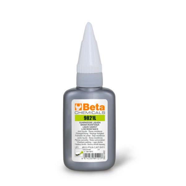 Reconstrutor anaeróbico Beta 9821L 20 de 20gr de resistência média para fixação temporária de peças com manutenção regular, protege as roscas da corrosão e tolera uma leve contaminação de óleos. Este selo líquido Se você permitir a desmontagem com ferramentas manuais