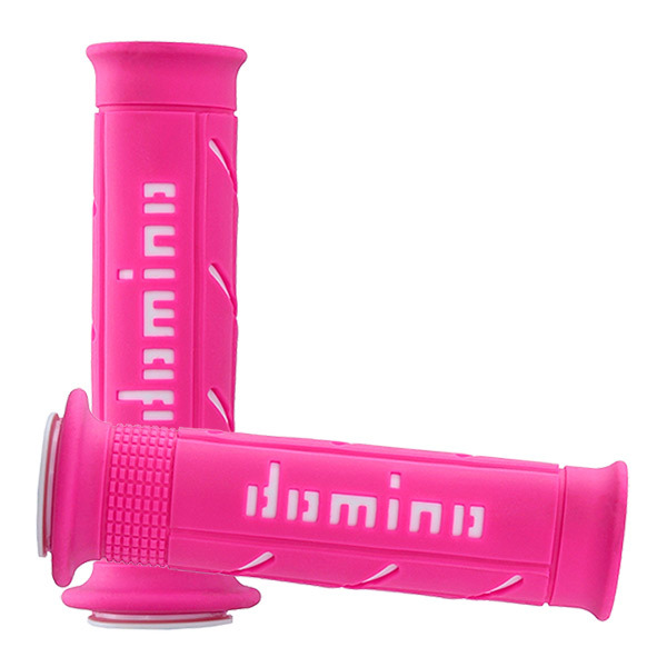 Conjunto de punhos estilo estrada e corrida, A250 em fúcsia e Domino branco perfurado nas extremidades.