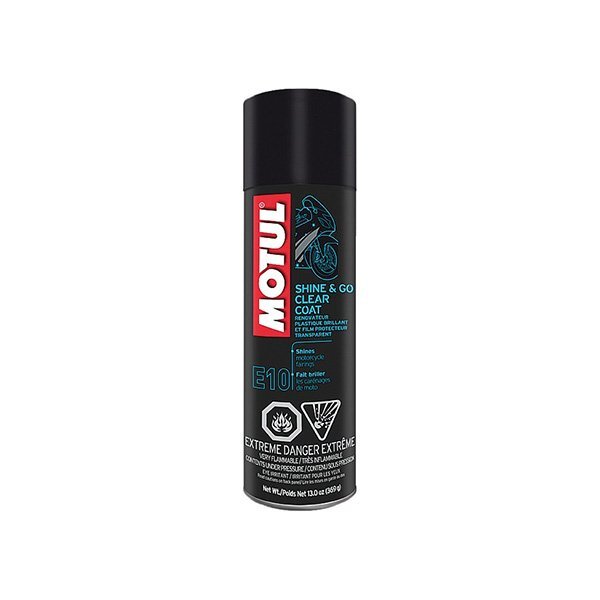 O E10 Motul Brilho & Go cria uma camada de cera brilhante após a limpeza duráveis que protegem seus carenagens e dá brilho.