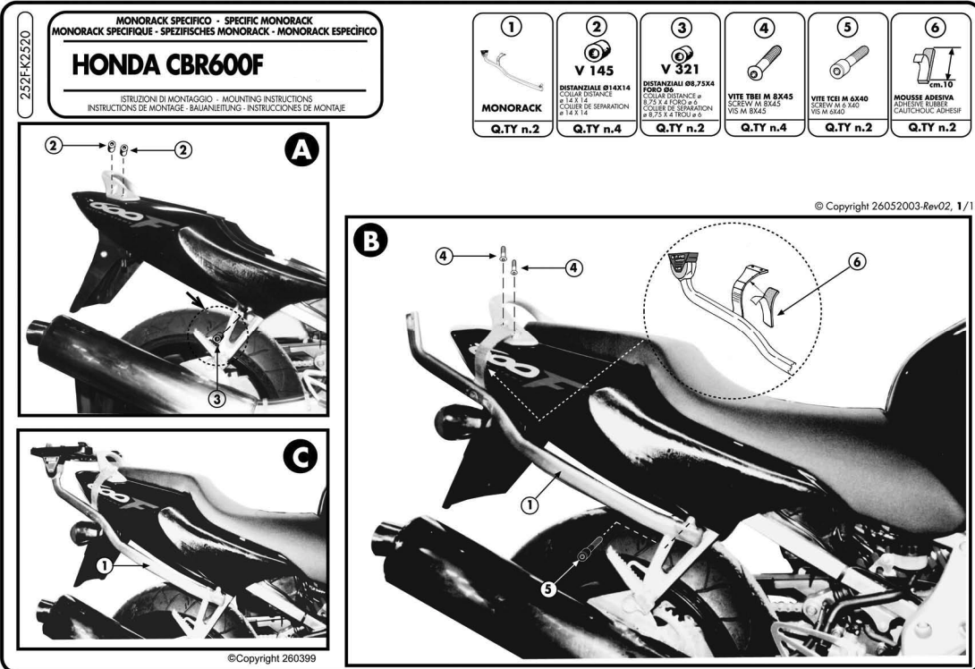 Base de ancoragem Givi para motocicleta específica Monokey grill Honda CBR 600 F de 99 a 09. Ref: 252F