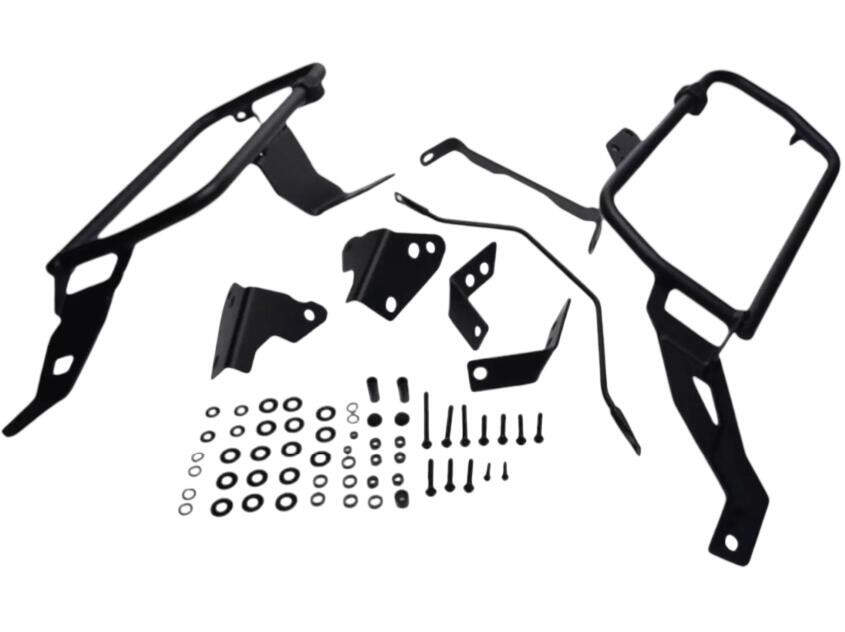 - Acabamento: Pintura metálica de alta densidade que protege contra corrosão e desgaste do uso contínuo. Diâmetro robusto: Tubos com 20 mm de espessura, um dos mais resistentes do mercado, proporcionando firmeza e estabilidade mesmo com alforjes carregados. Reforço: Uma barra transversal adicional melhora a rigidez estrutural em percursos exigentes.