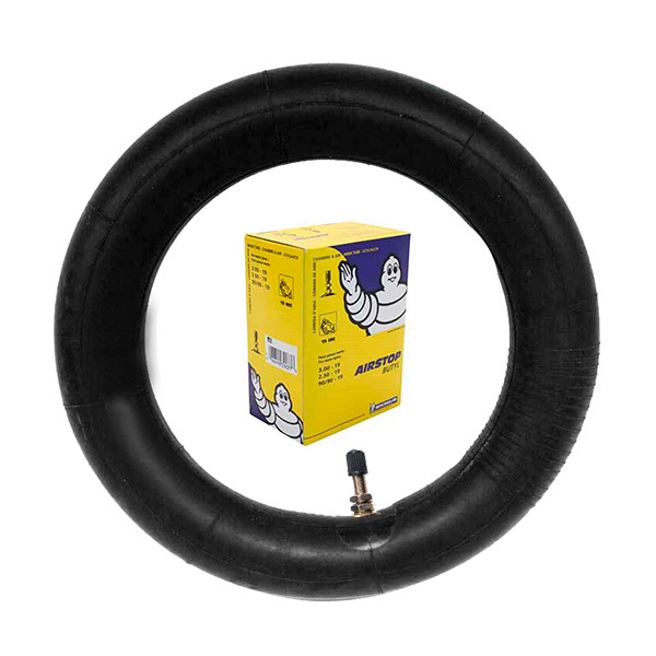 A Michelin apresenta sua câmara de ar 19ME específica para estradas com uma válvula reta tipo TR4. Esta culatra de motocicleta é feita de butil resistente ao desgaste de alta qualidade. Além disso, melhora o desempenho, mantendo sua elasticidade em diferentes tipos de clima.